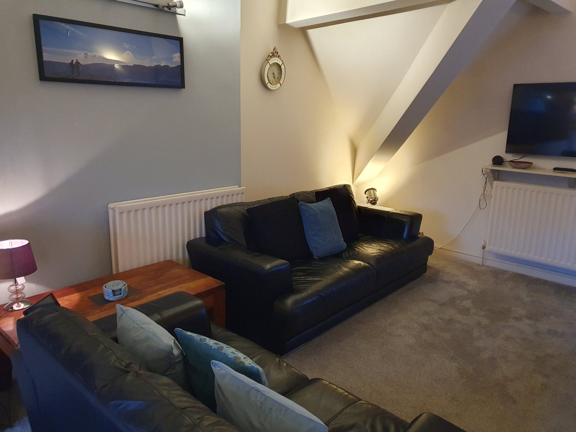 Feel on top of the world. Enjoy the views, over the Keswick rooftops, of Whinlatter, Skiddaw and Dodd, looking towards Bassenthwaite Lake. Feel the space with the high beamed ceilings. Wind down in the evening in front of the 49" flatscreen smart TV.